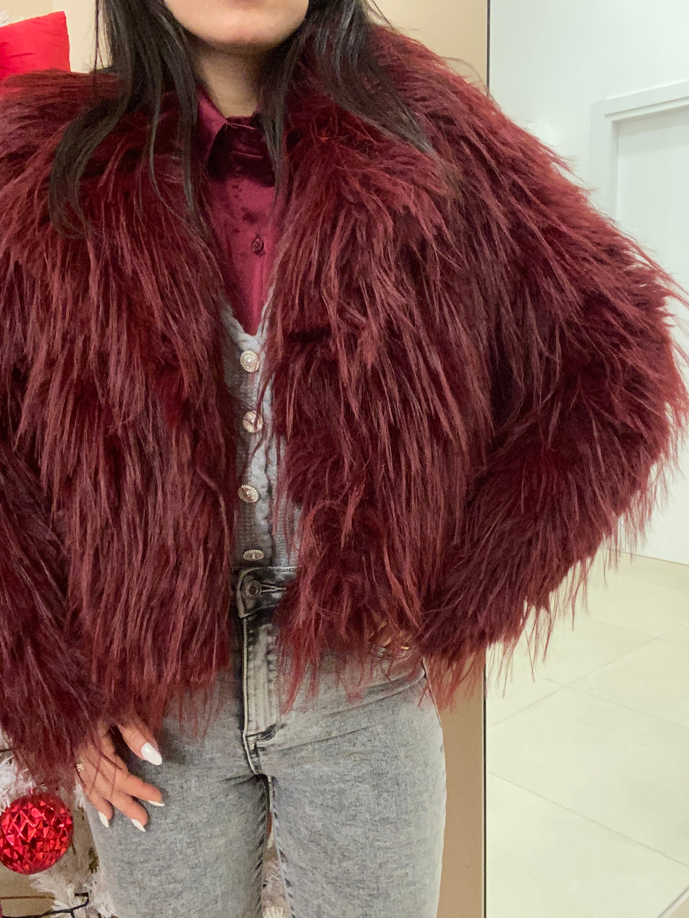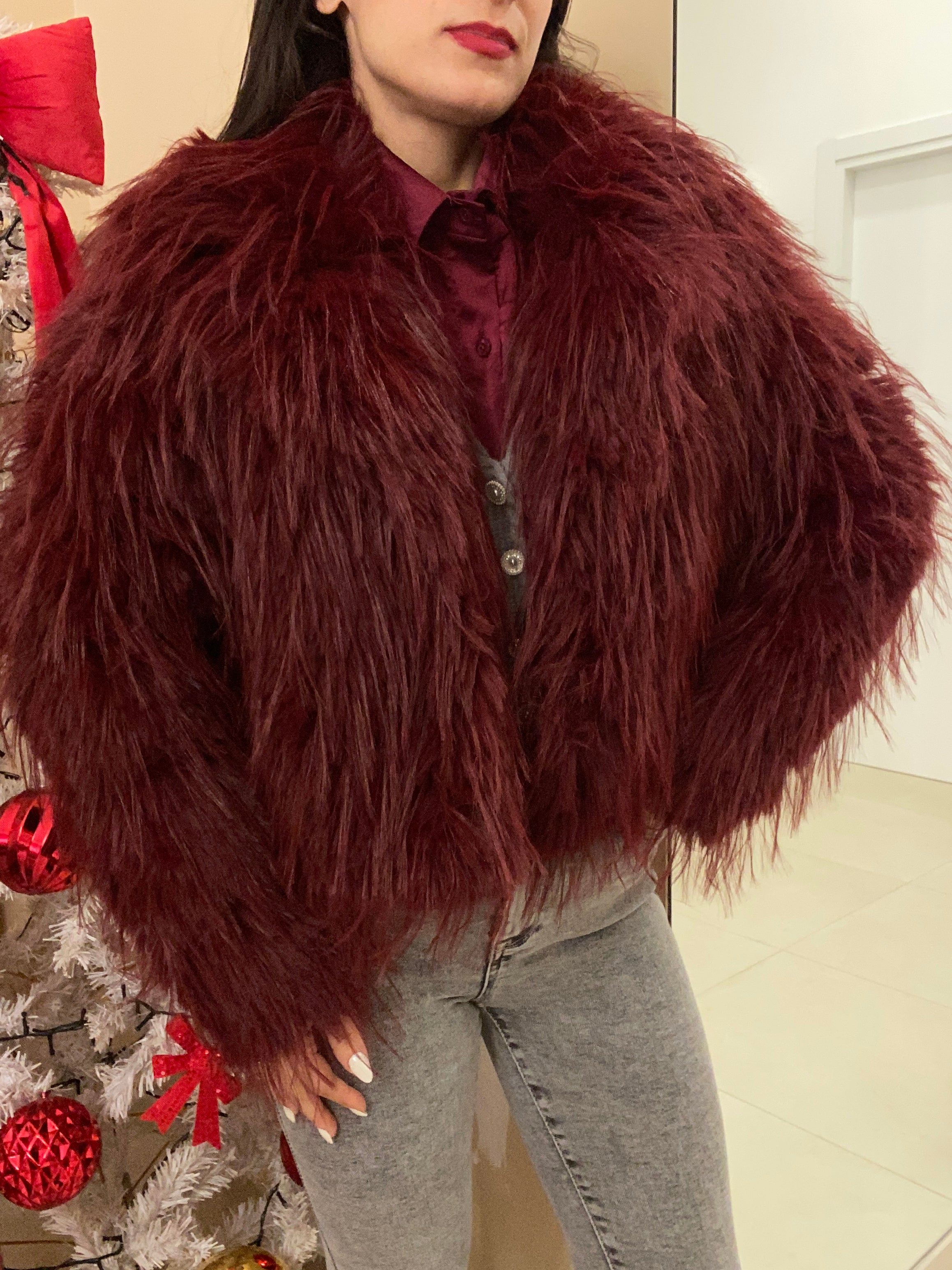 EcoPelliccia struzzo Bordeaux