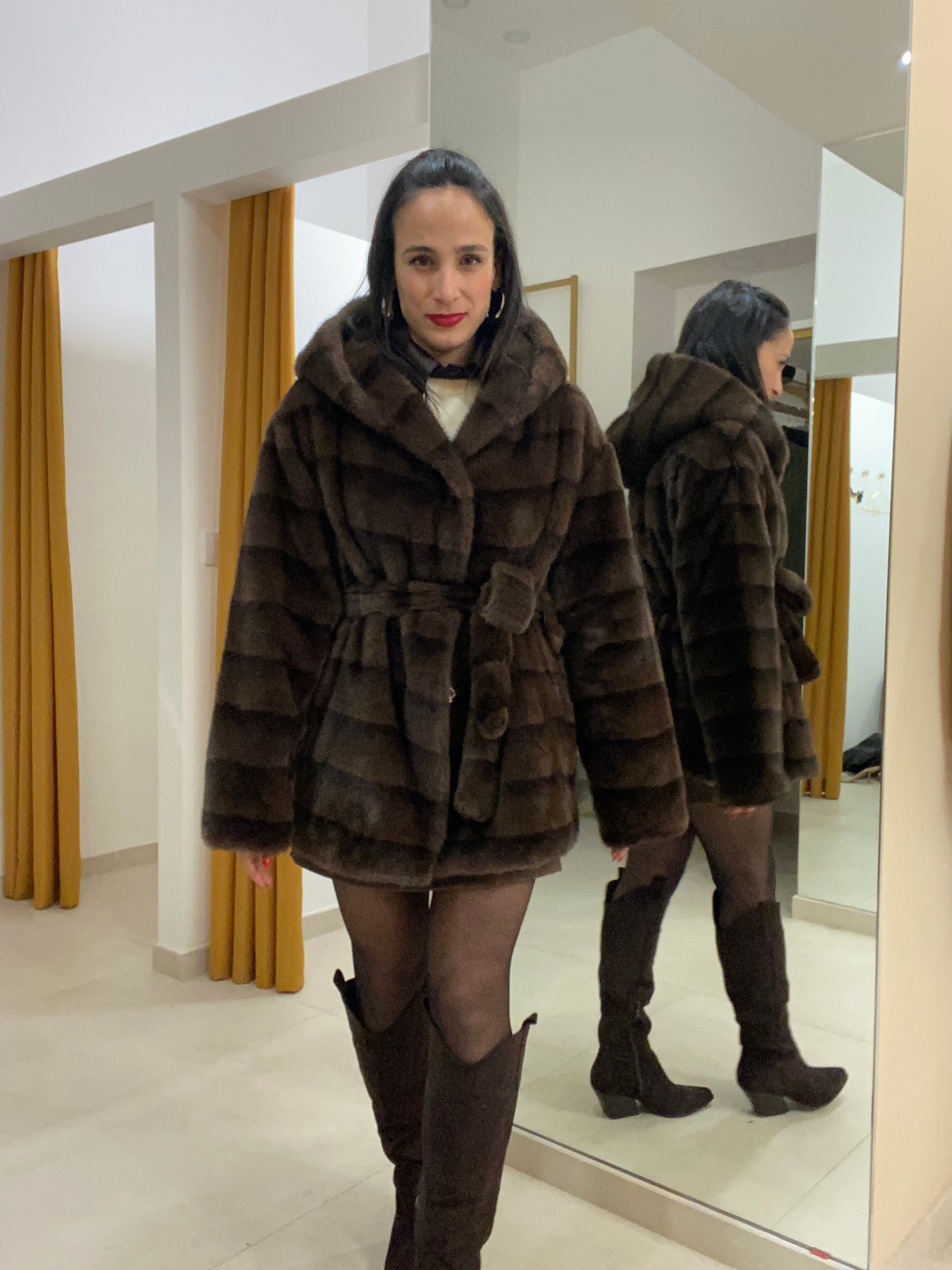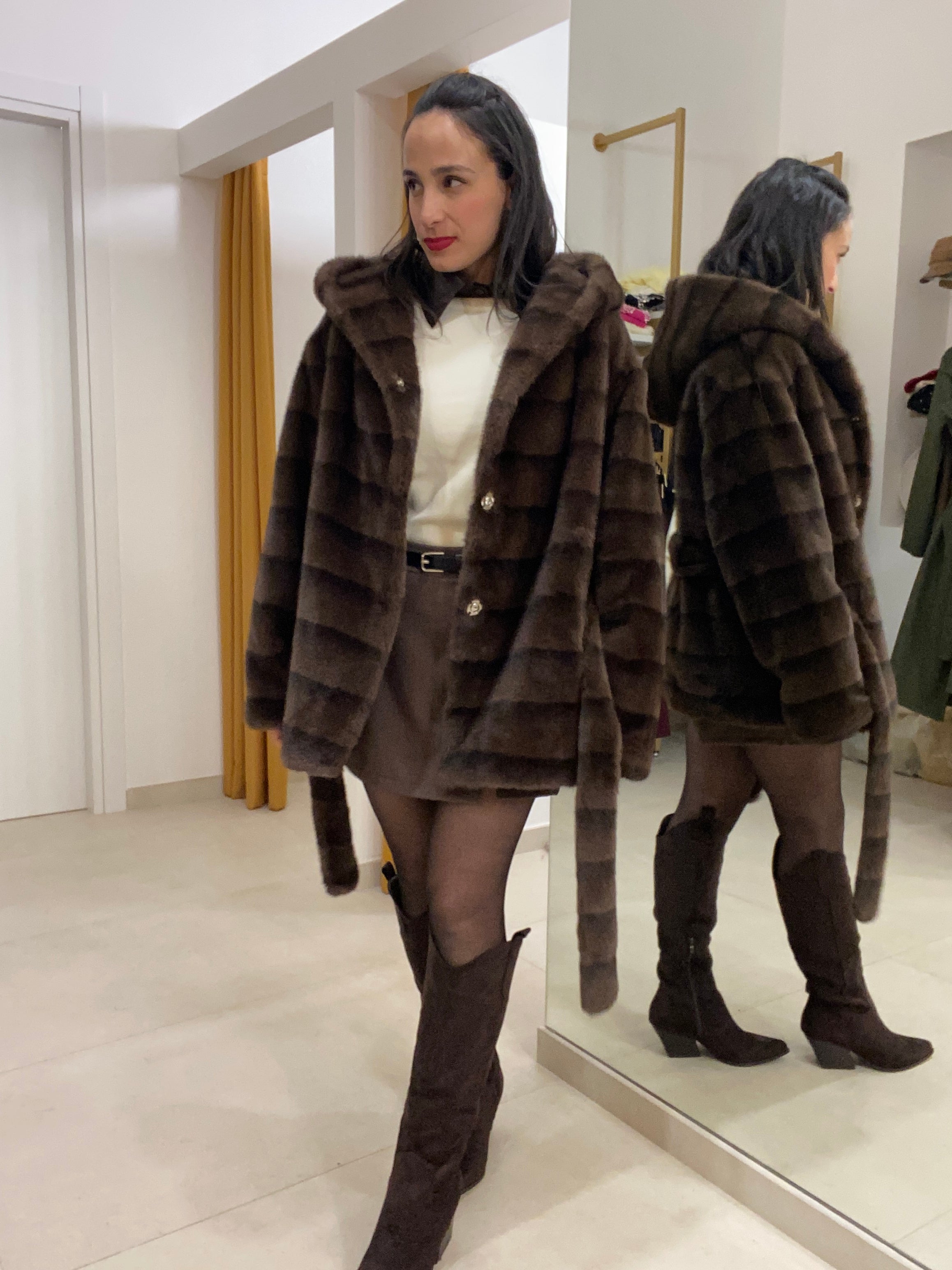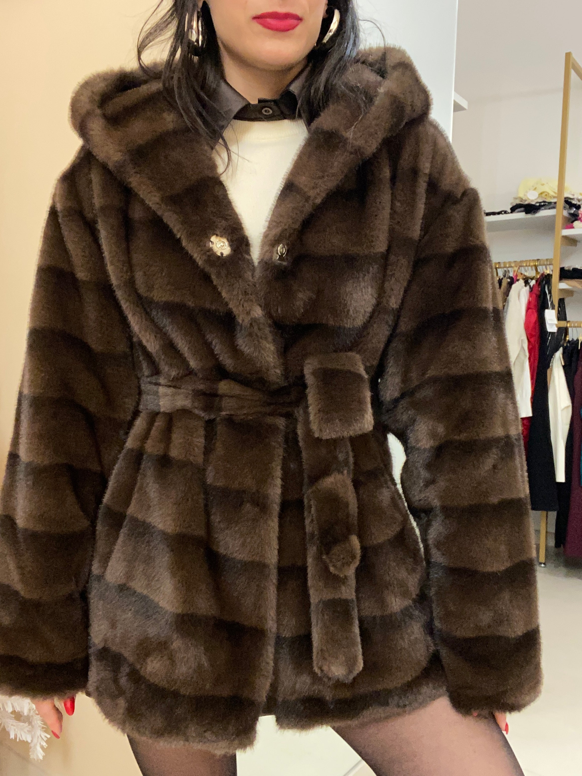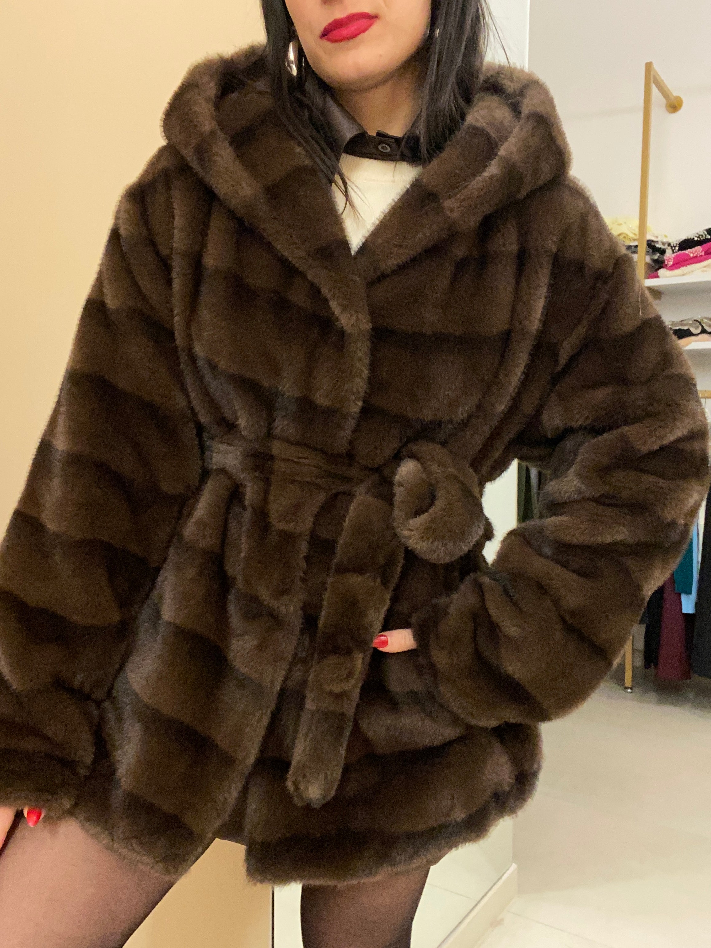 Eco visone con cintura in vita