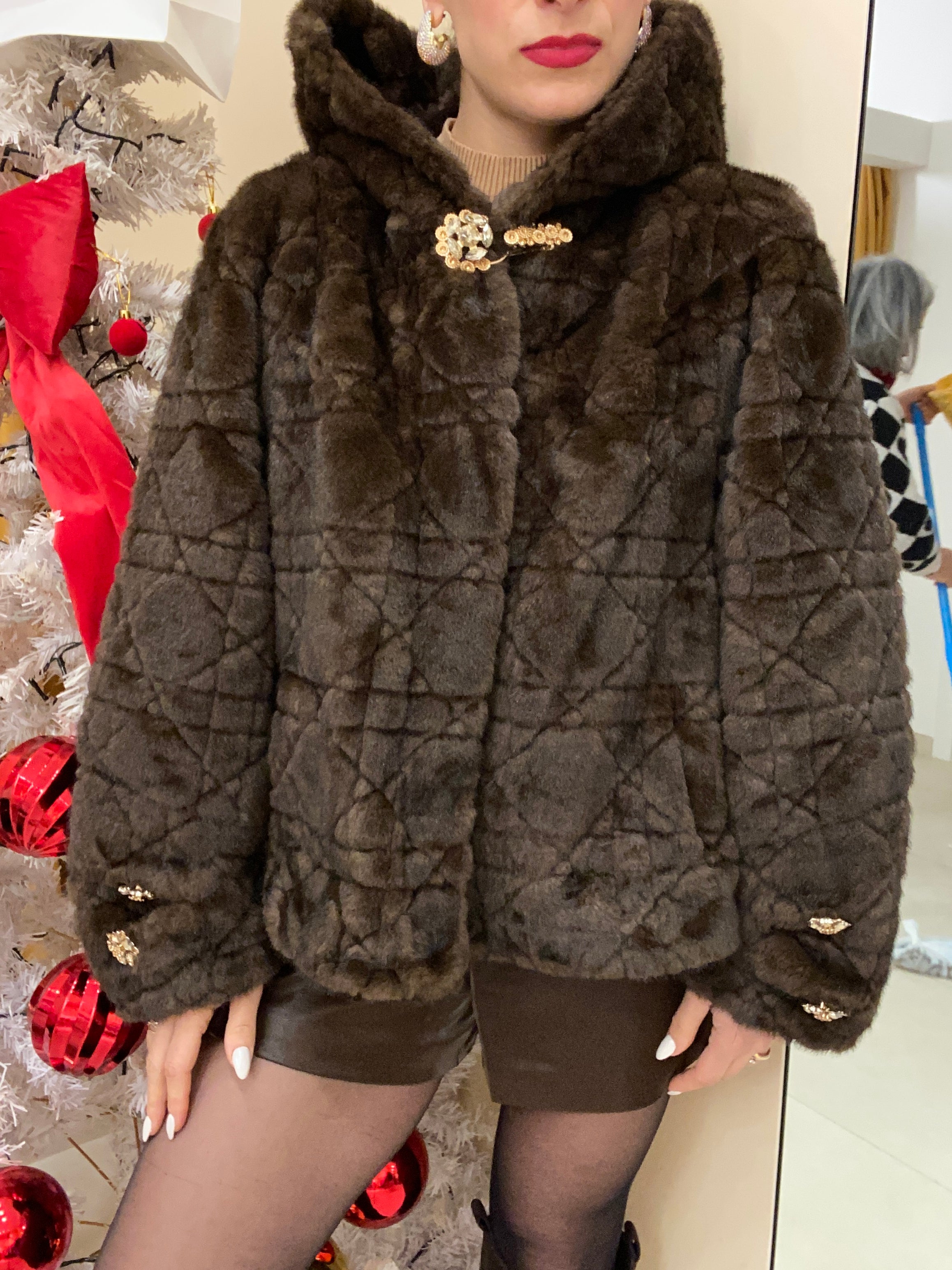 Eco visone con dettaglio con bottoni in oro