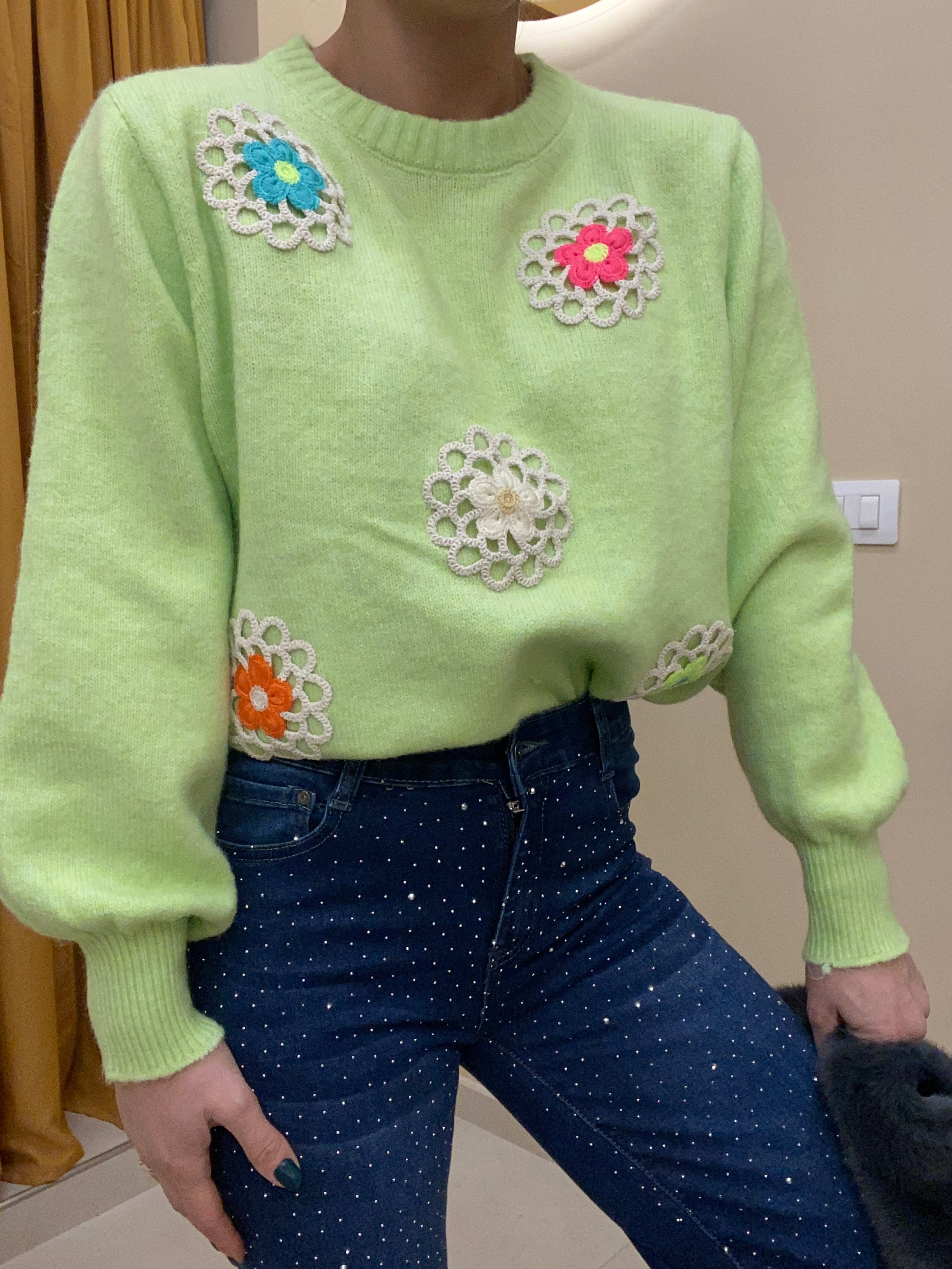 Maglione con fiori fluo Maglione con fiori fluo
