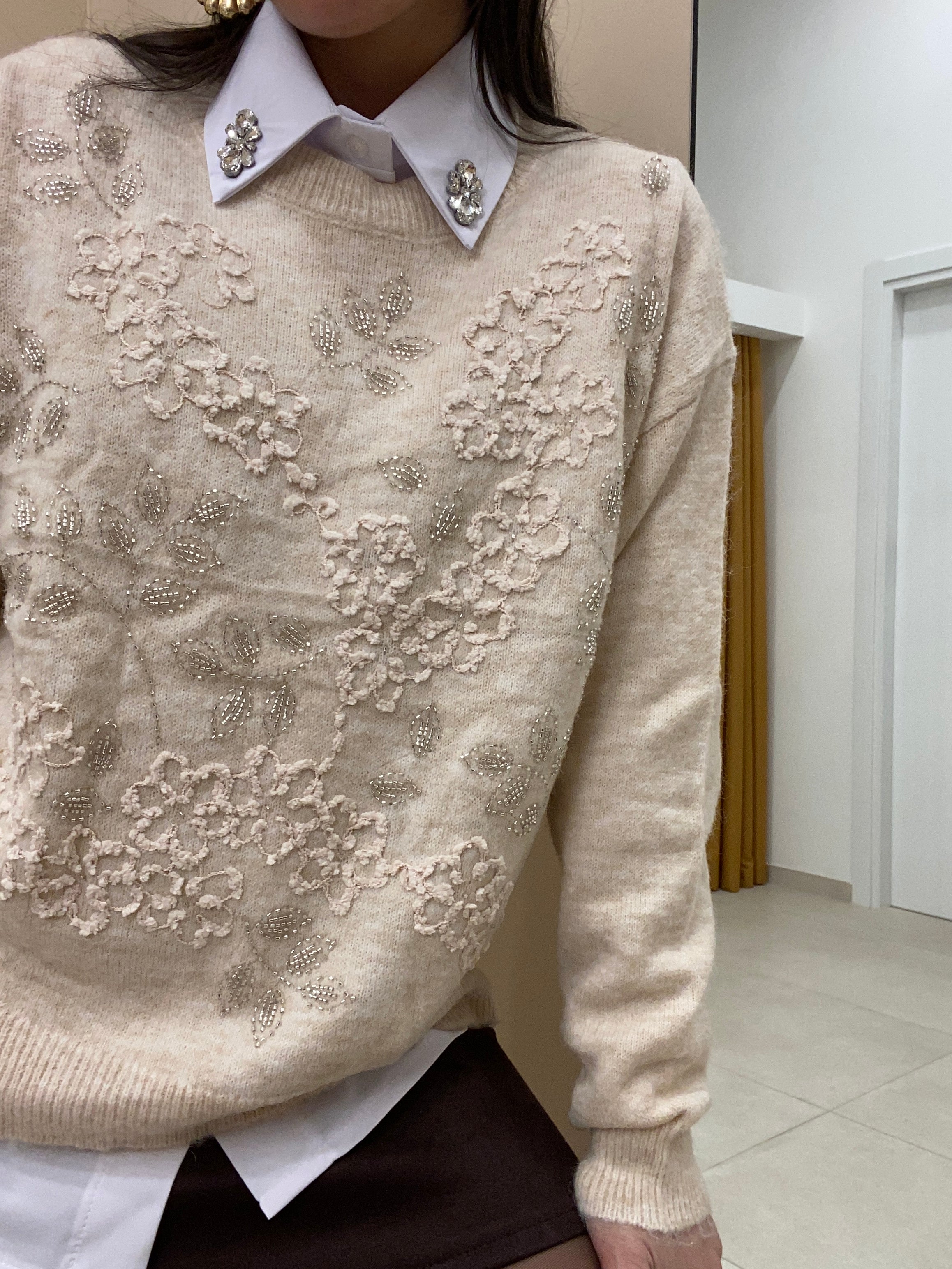 Maglione con fiori e perline