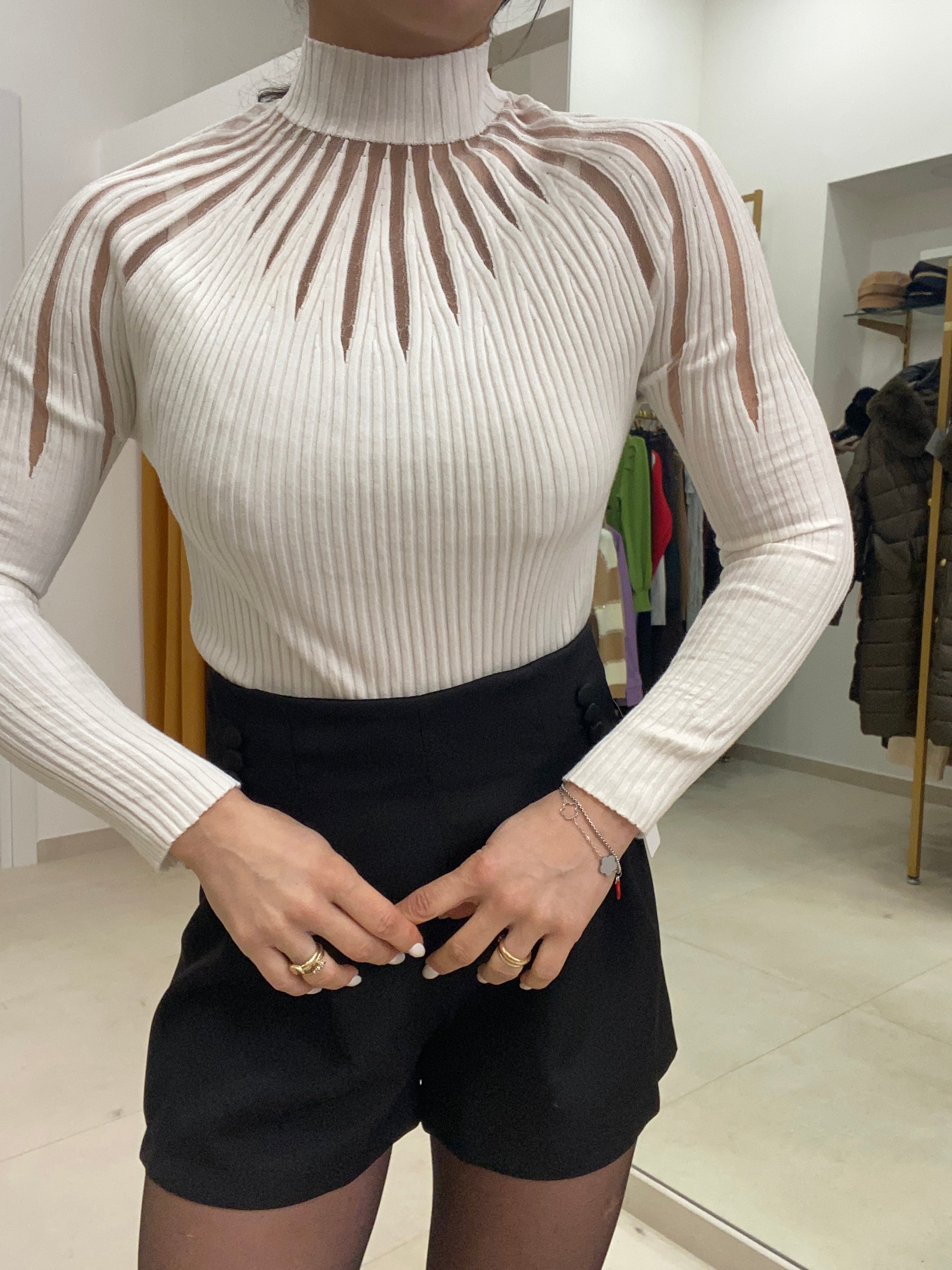 Maglia a costine con trasparenze
