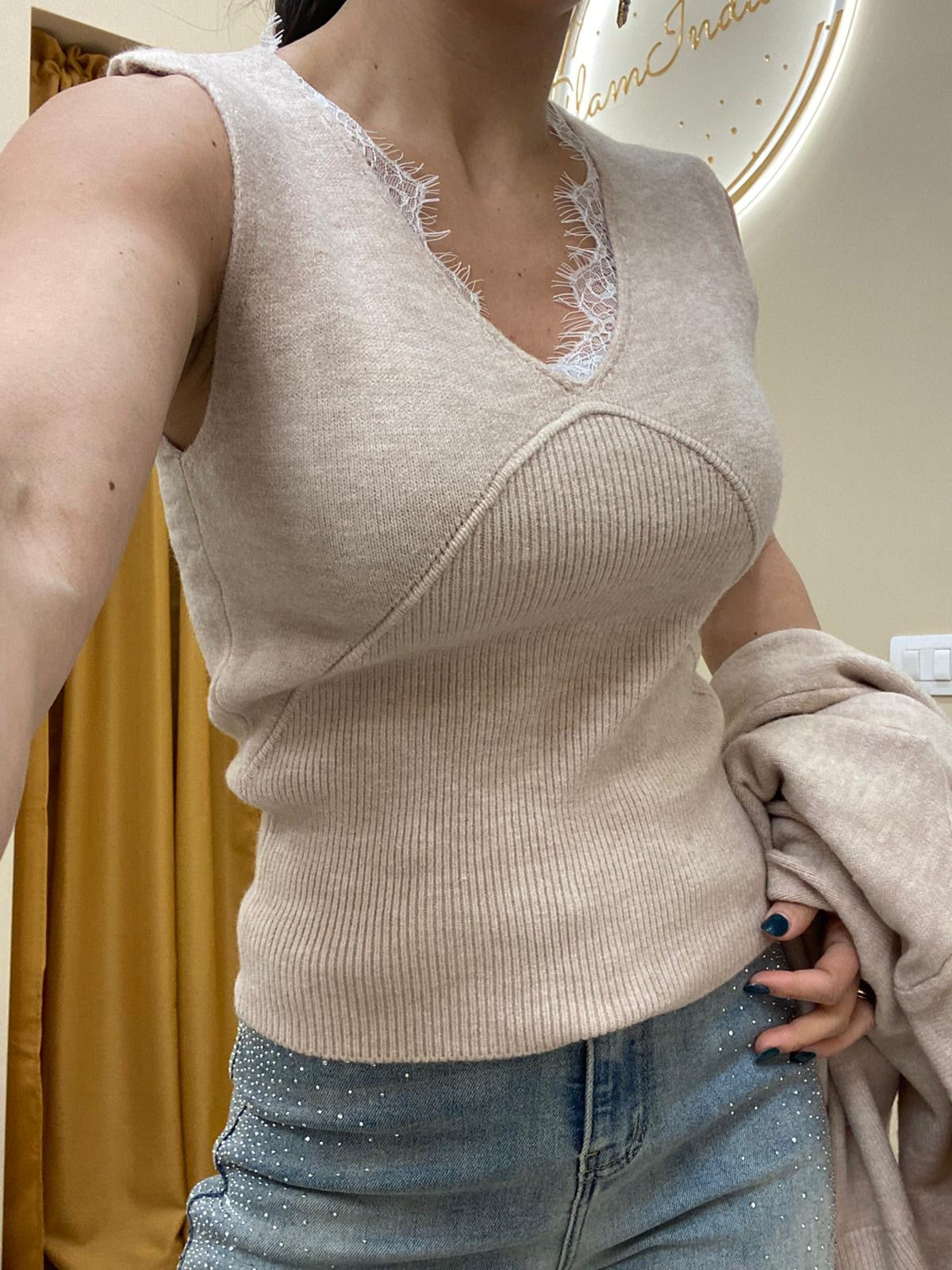 il top presenta dettaglio pizzo sul collo