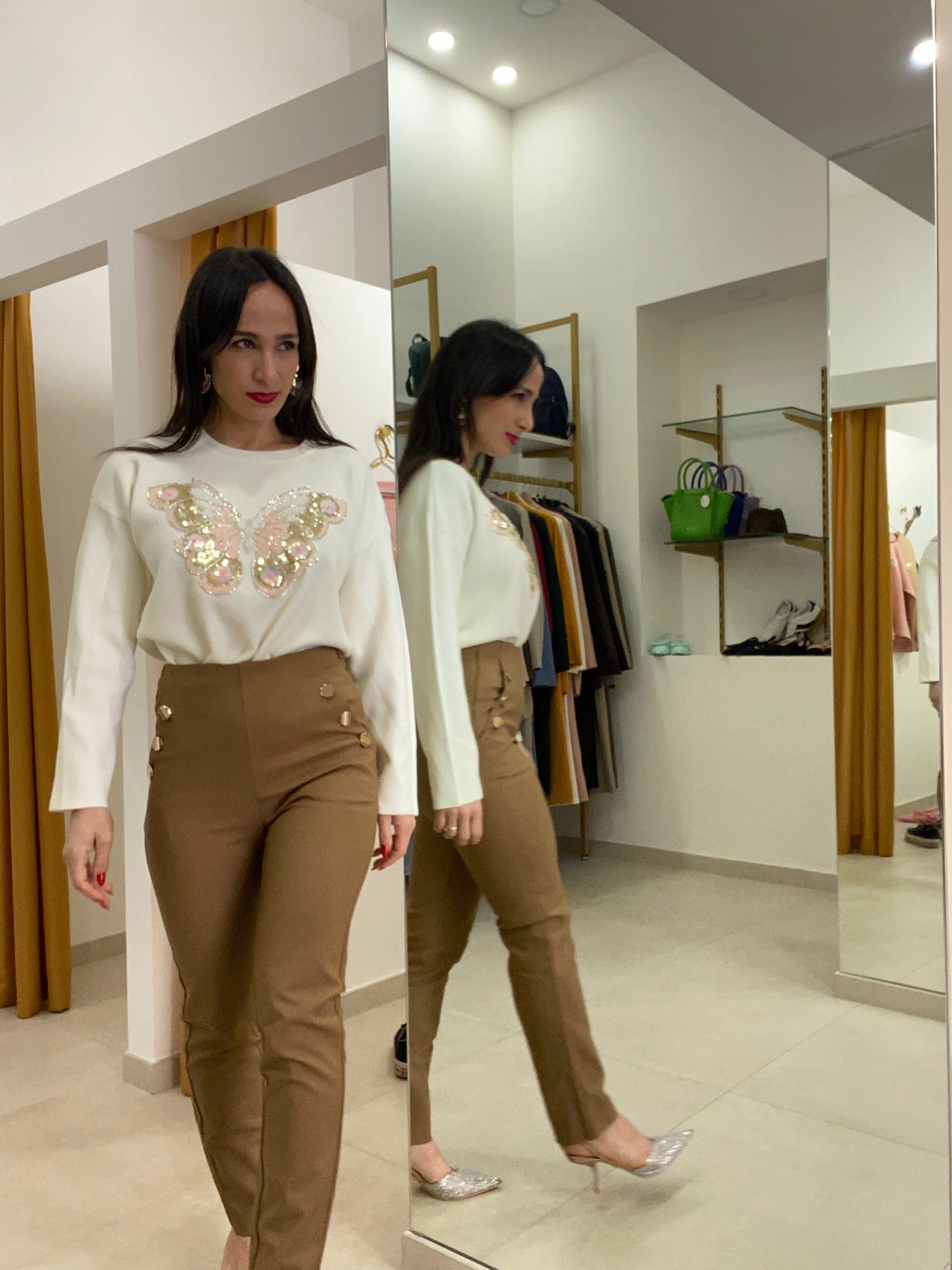 • Pantalone bottoni oro beige