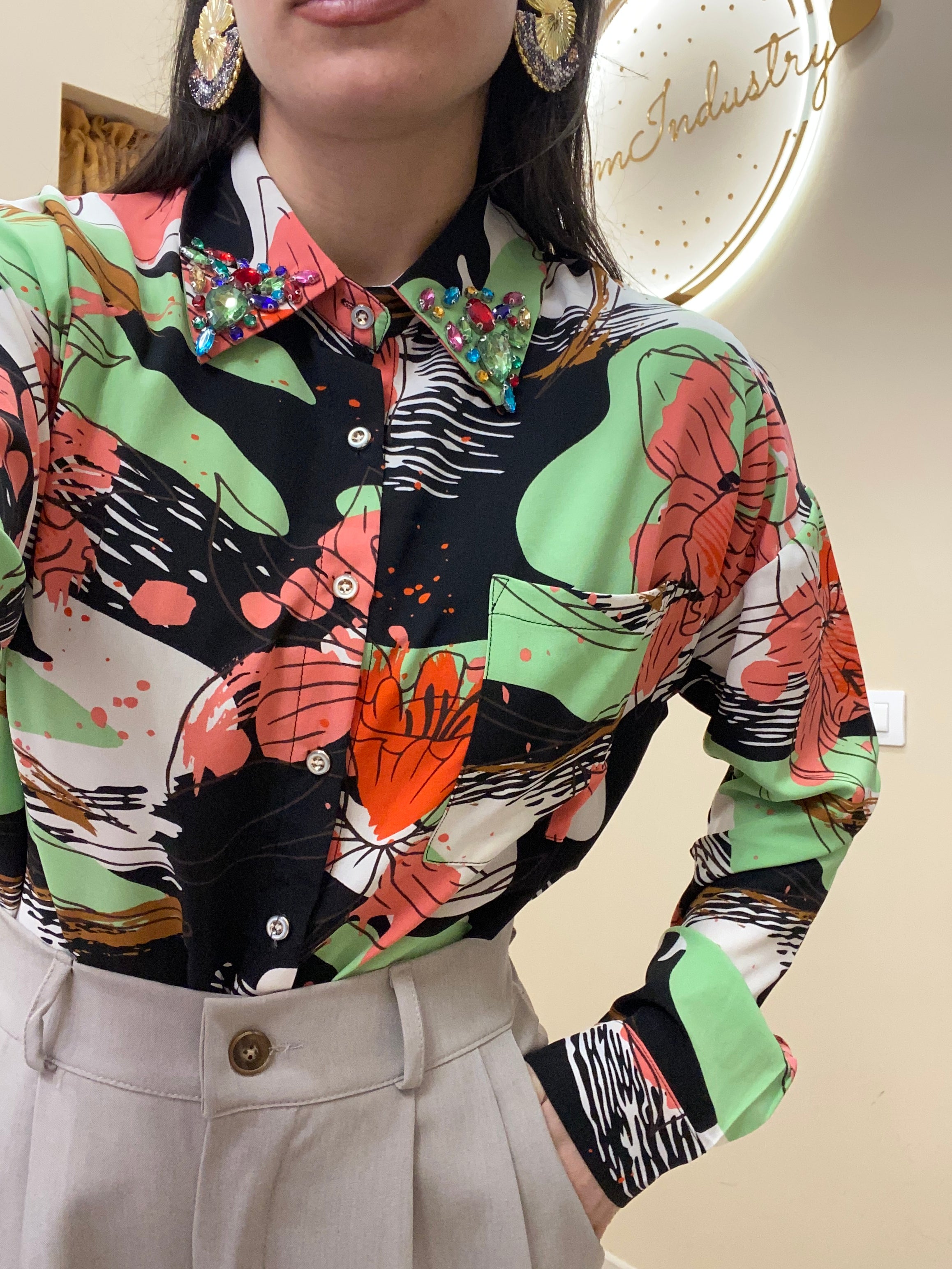 Camicia con collo gioiello